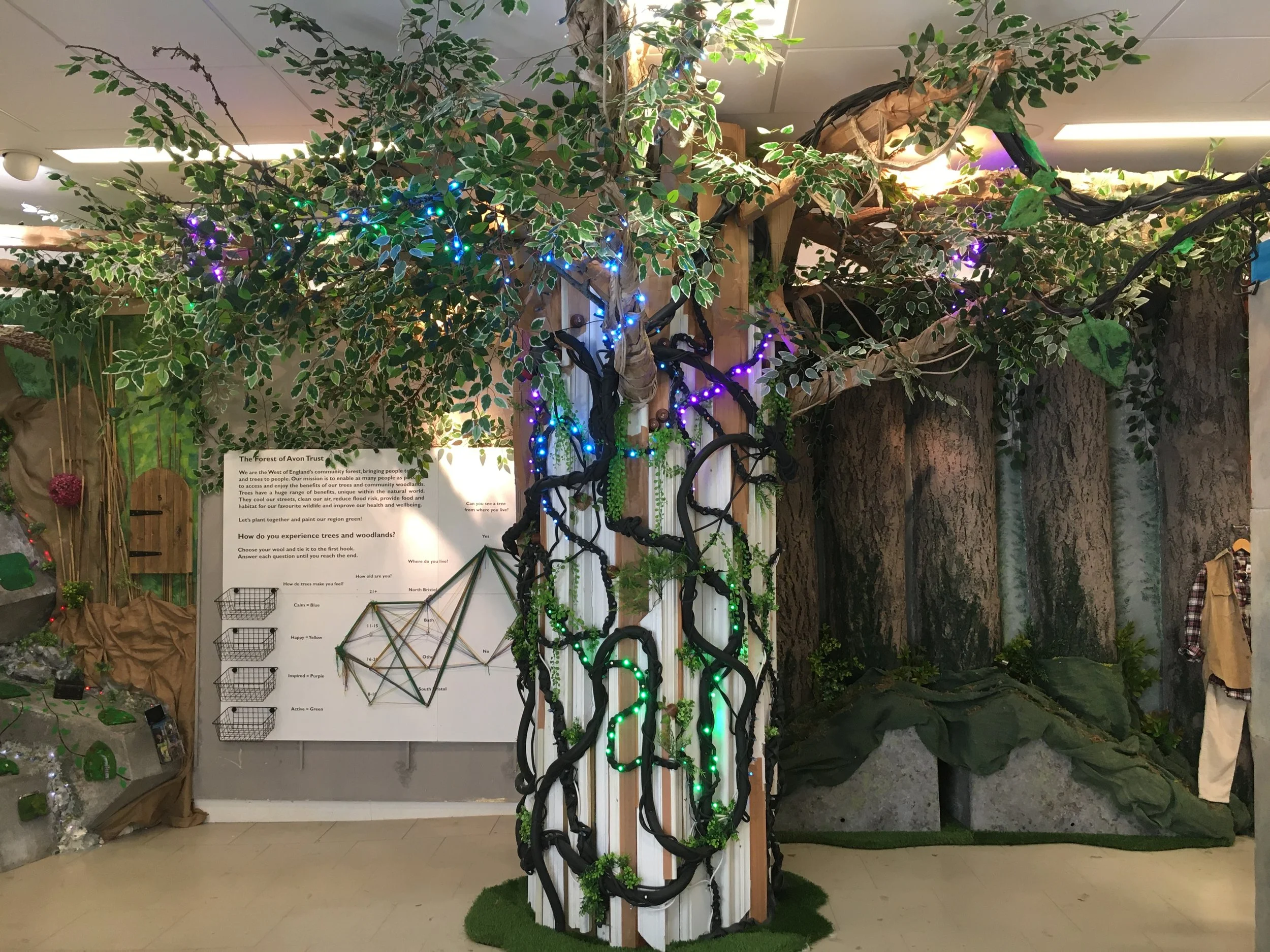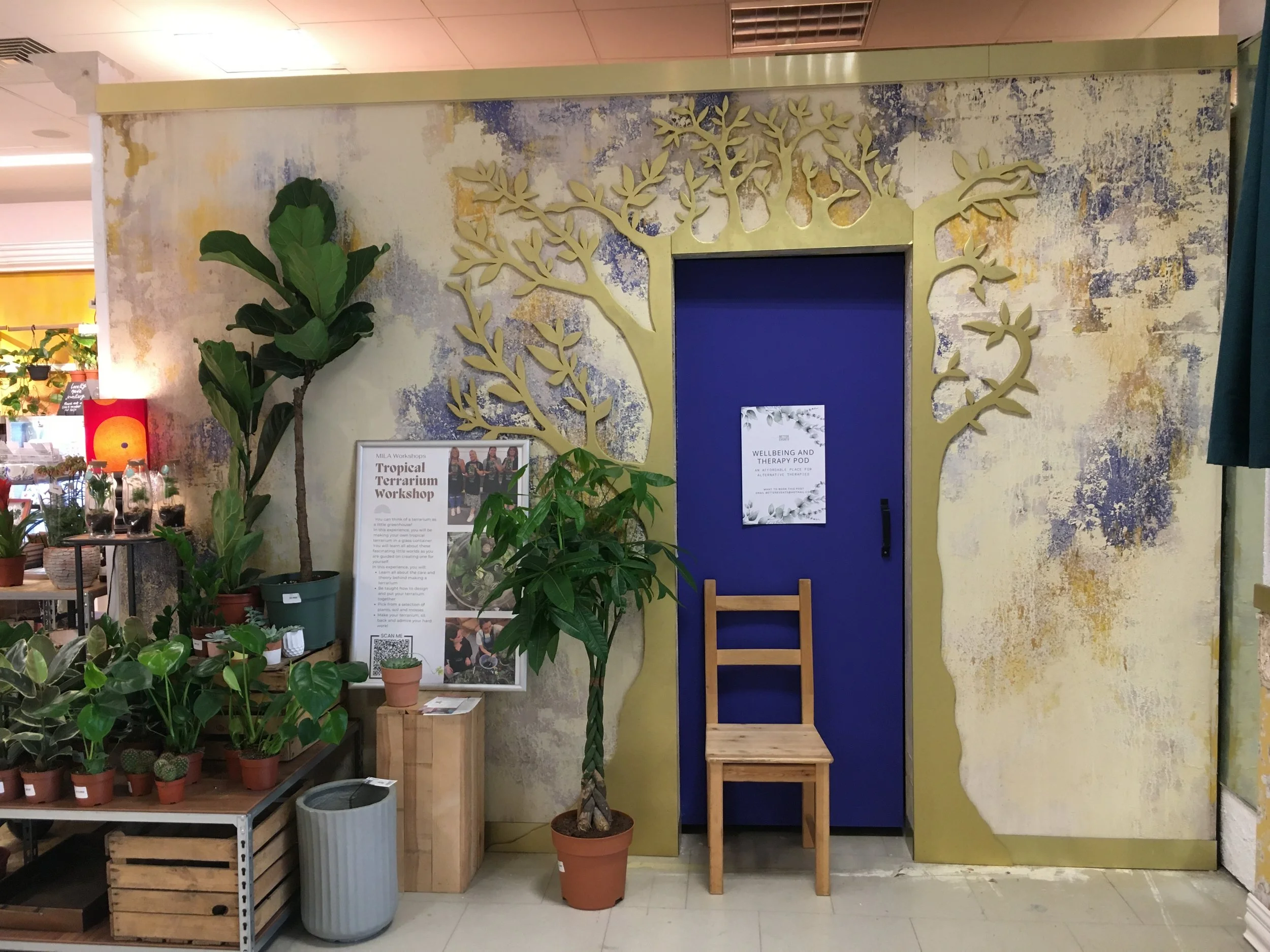 Built using entirely upcycled materials, including, wood, paint and fabrics.
